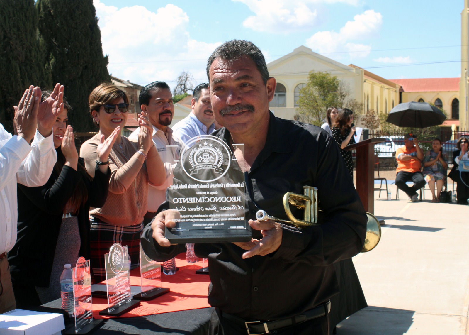 Hoy, Francisco Javier Álvarez Córdoba recibió un merecido reconocimiento por su destacada participación en los eventos del Centenario, así como por los logros alcanzados al frente de la Banda de Guerra de la Primaria Benito Juárez, en su natal Cananea.