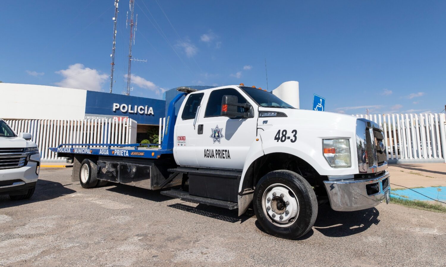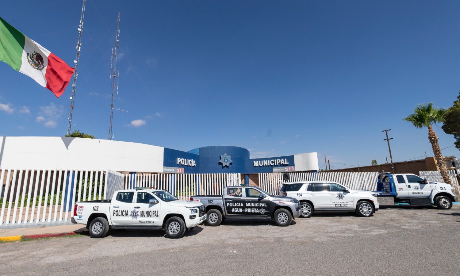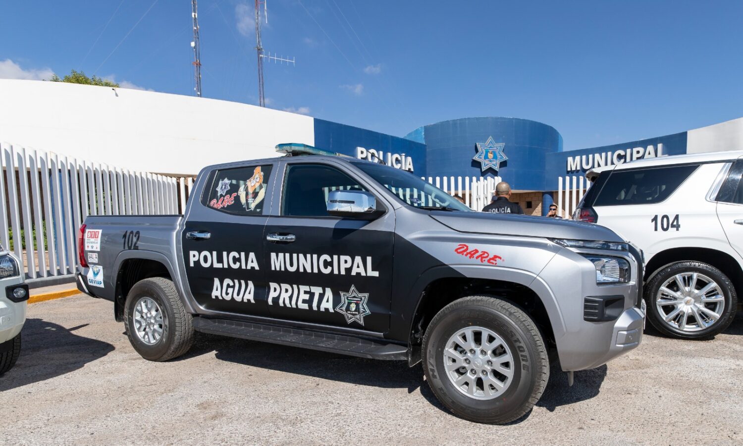 Agua Prieta, Sonora a 3 de julio de 2025.- El nuevo equipamiento incluye dos camionetas tipo pick-up modelo Mitsubishi 2025, una destinada al patrullaje urbano y otra al programa preventivo D.A.R.E.; una grúa tipo plataforma modelo 2017 que refuerza la operación vehicular; y una vagoneta Chevrolet Tahoe modelo 2021 destinada a labores de resguardo y traslado institucional.