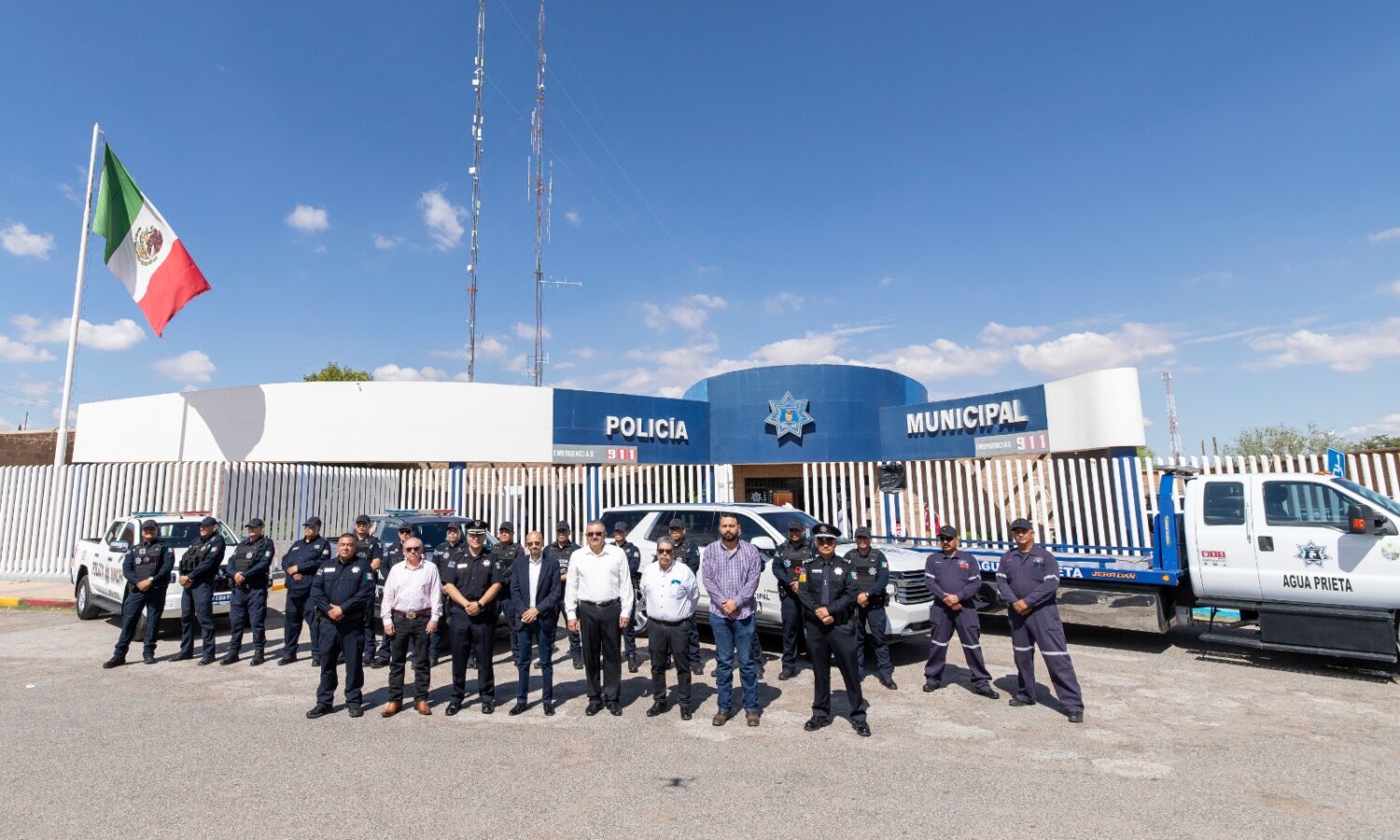 Durante el acto protocolario, el alcalde, acompañado por autoridades municipales, destacó que esta acción forma parte del esfuerzo conjunto para reforzar la capacidad operativa de los cuerpos de seguridad y atender con mayor eficacia las necesidades de Agua Prieta.