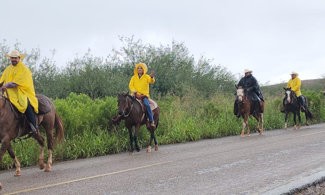Los jinetes, entre ellos adultos mayores y jovencitos, se aventuraron al recorrido con sus impermeables para disfrutar de esta travesía que incluye los bellos paisajes de la región, la camaradería, bebidas, comidas típicas y desde luego música regional de “los taka taka” con acordeón y guitarra.