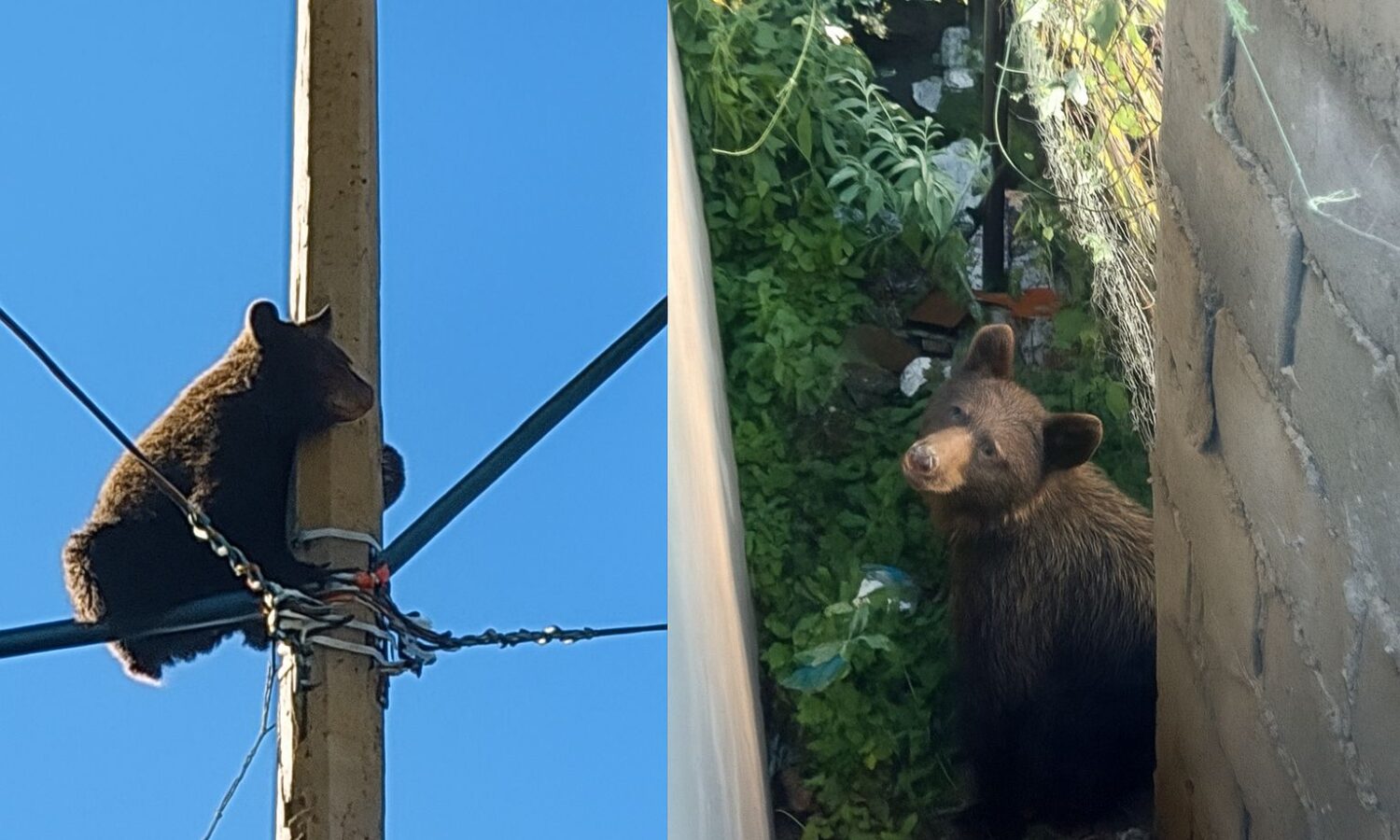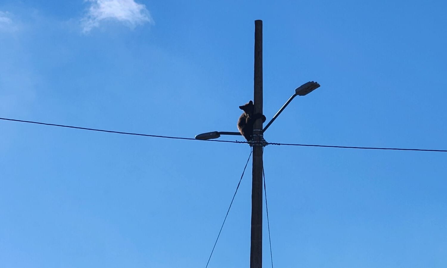 Cananea, Sonora, a 28 de septiembre de 2025.- Poco después de las 7:00 de la mañana de este domingo se registró el avistamiento de un osezno de la especie oso negro americano, el cual trepó a un poste de energía eléctrica dentro de instalaciones de Parque DIF en Cananea, provocando gran movilización de cuerpos de emergencia y el acordonamiento del área.