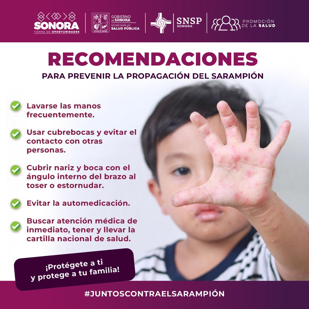 Hermosillo, Sonora; 16 de septiembre de 2025.– El Gobierno de Sonora, a través de la Secretaría de Salud Pública, exhorta a la población a mantener actualizada su vacunación contra el sarampión, una enfermedad altamente contagiosa que puede tener graves consecuencias para la salud. La aplicación de la vacuna continúa siendo la medida más efectiva para prevenirla.