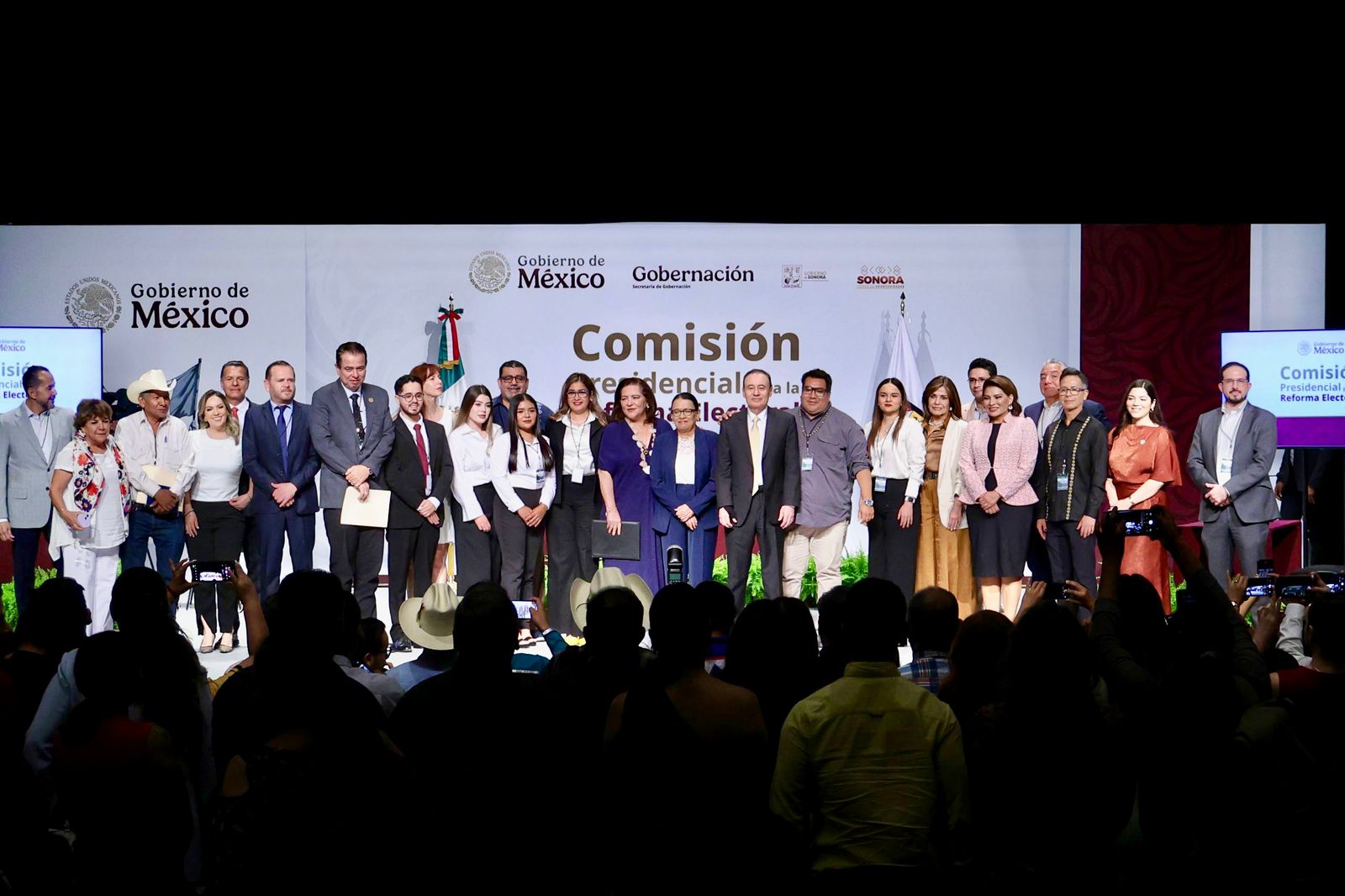 Hermosillo, Sonora; 8 de octubre de 2025.- Con la finalidad de conocer las opiniones y propuestas sobre temas específicos de los diferentes sectores de la sociedad para la construcción de un proyecto de Reforma Electoral, acorde a las condiciones actuales en México, el gobernador Alfonso Durazo Montaño y la secretaria de Gobernación, Rosa Icela Rodríguez Velázquez, encabezaron los trabajos de la Comisión Presidencial para la Reforma Electoral.