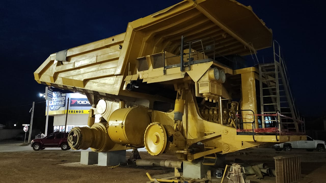 A la entrada de Cananea, se está colocando un camión de acarreo Unit Rig MT4400, No. Económico DT320, de 260 toneladas que transportó material a partir de 1997 (28 años). Durante años formó parte del pulso de la mina de Cananea; hoy, gracias a la gestión del Gobierno Municipal ante la empresa minera Buenavista del Cobre, vuelve a esta tierra convertido en monumento, con la finalidad de impulsar el turismo y fortalecer la identidad de la ciudad.