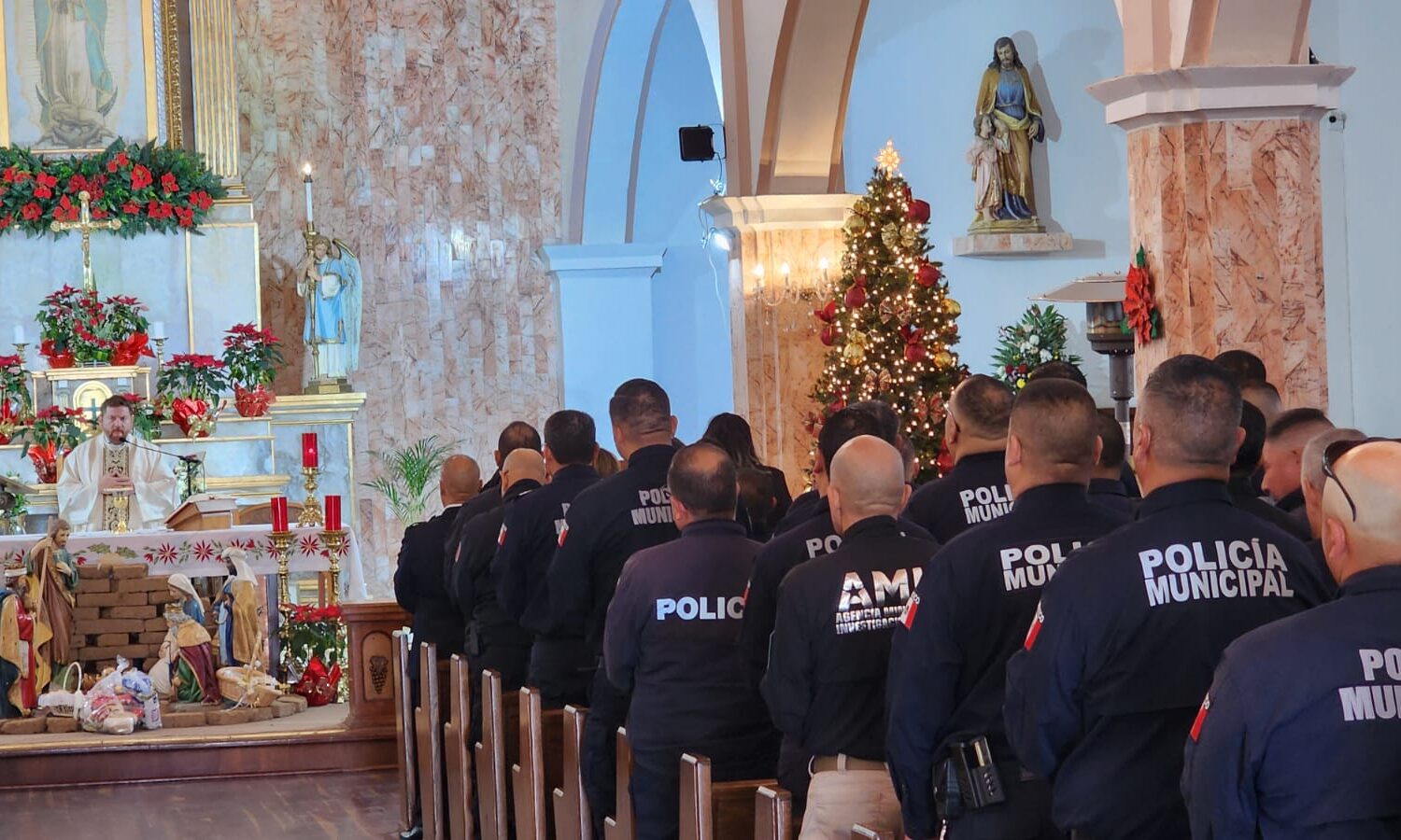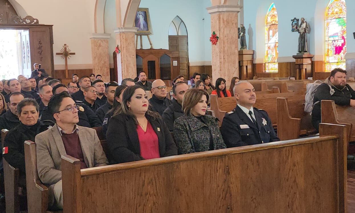 Cananea, Sonora, a 06 de enero de 2026.- Este 6 de enero se conmemora en Sonora el Día del Policía, y en Cananea el Gobierno Municipal organizó una serie de eventos iniciando por la misa de acción de gracias en honor del cuerpo de elementos policiacos que desempeñan tan loable labor, oficiada por el Padre Marcos Rivera en la Parroquia de Nuestra Señora de Guadalupe.