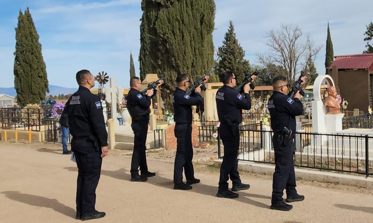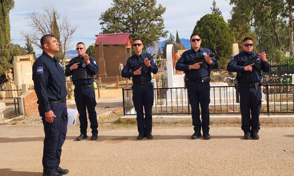 Posteriormente, se efectuó una ceremonia en honor a Policías Caídos, en el Panteón Municipal Severiano Moreno, donde se realizaron honores y pase de lista, además de la colocación de ofrendas florales y donde la teniente María Valencia, en nombre de sus compañeros de la corporación, recordó el sacrificio de aquellos oficiales que han caído en cumplimiento de su deber.