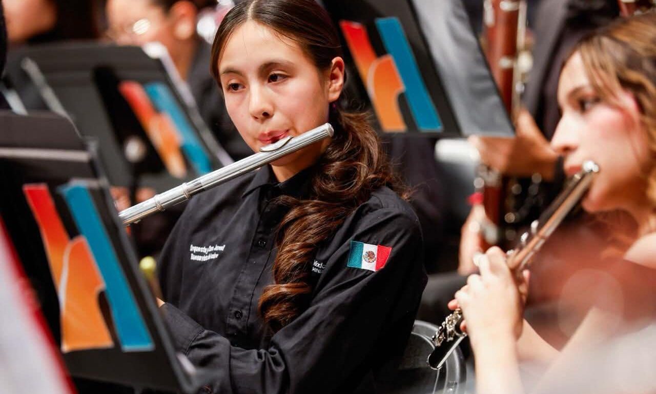 El programa musical incluyó piezas como “Danza Eslava No. 8”, “Caballería Ligera”, “Conga de Fuego Nuevo”, “Danzón No. 2” y “Sonora Querida”, entre otras, interpretadas por un ensamble que integró cuerdas, alientos madera, alientos metal y percusiones.