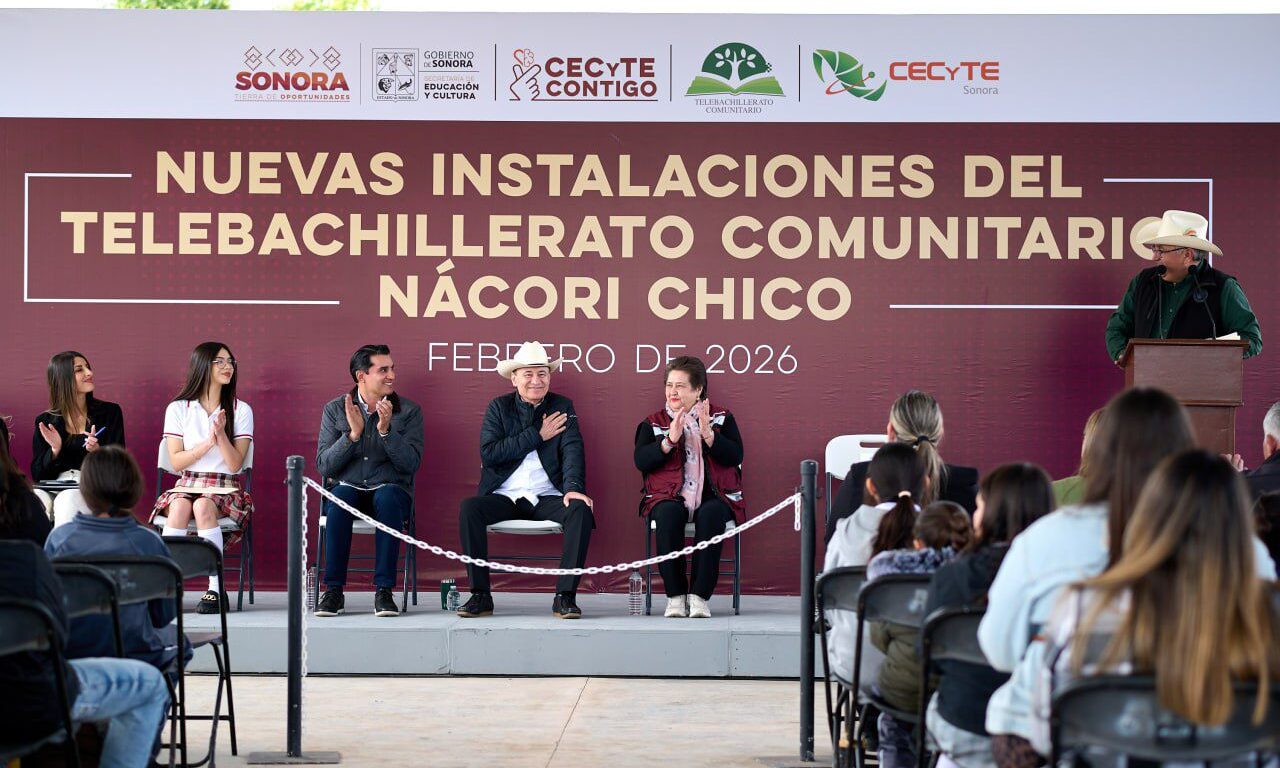 Nácori Chico, Sonora; 3 de febrero de 2026.- Con el objetivo de ampliar las oportunidades académicas para jóvenes estudiantes de comunidades rurales y acercar centros educativos a todas las regiones, como parte de los beneficios del Plan Sonora de Energías Sostenibles en educación, el gobernador Alfonso Durazo Montaño inauguró las instalaciones del Telebachillerato Comunitario de Nácori Chico, perteneciente al Colegio de Estudios Científicos y Tecnológicos del Estado de Sonora (Cecyte).