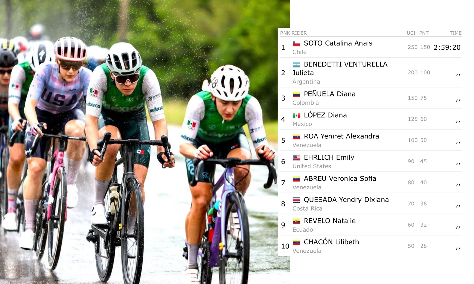 La difícil prueba para la ciclista cananense fue este sábado 21 de marzo con una demandante ruta de 120.6 kilómetros para la categoría élite, donde tuvo que completar 9 vueltas en un terreno plano y con el clima en contra, pues ese fin de semana se registraron intensas lluvias por la entrada de un frente frío, lo cual fue todo un reto en la ruta colombiana.