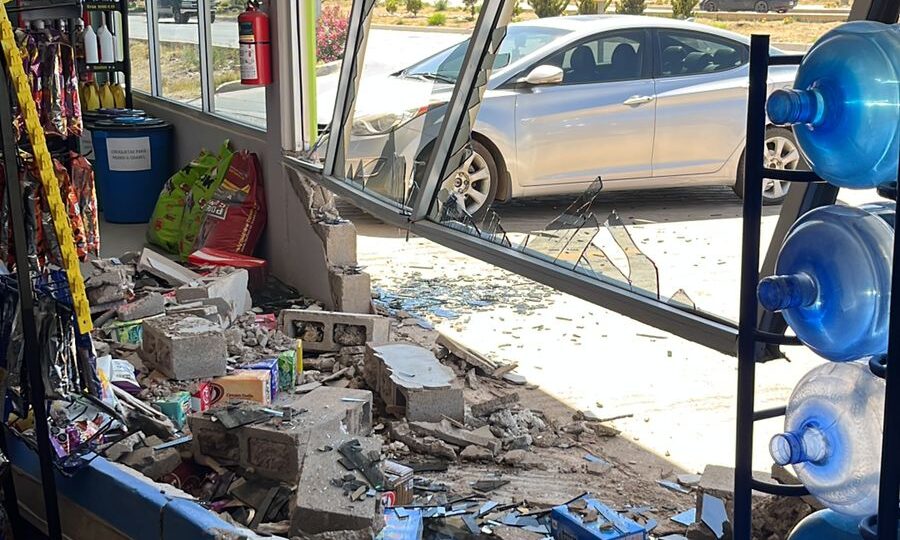 A mediodía un vehículo conducido por un adulto mayor perdió el control y se impactó contra tienda de conveniencia generando daños el establecimiento.