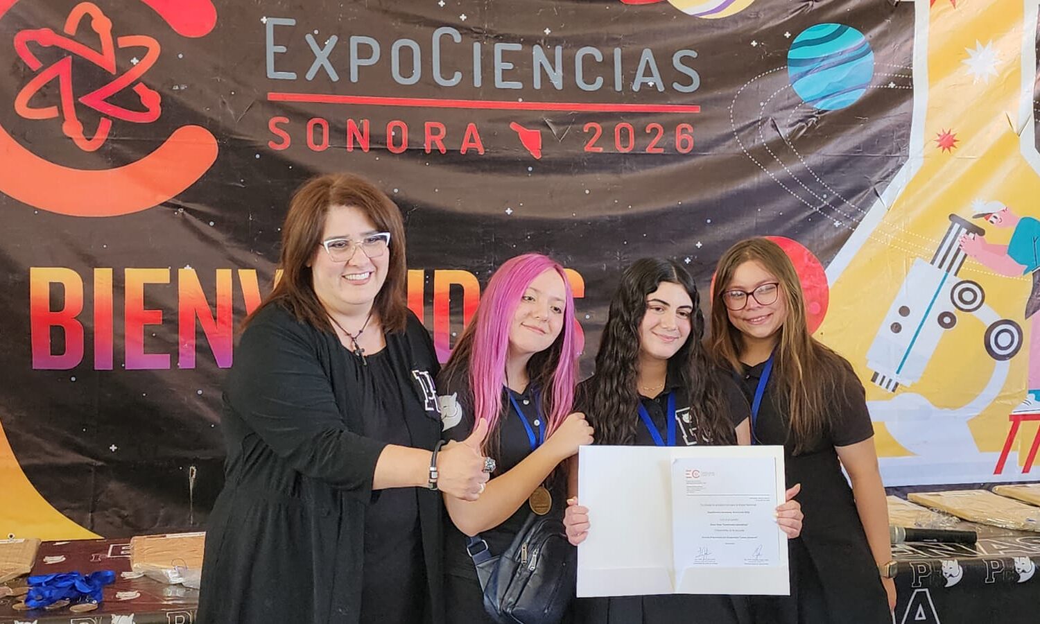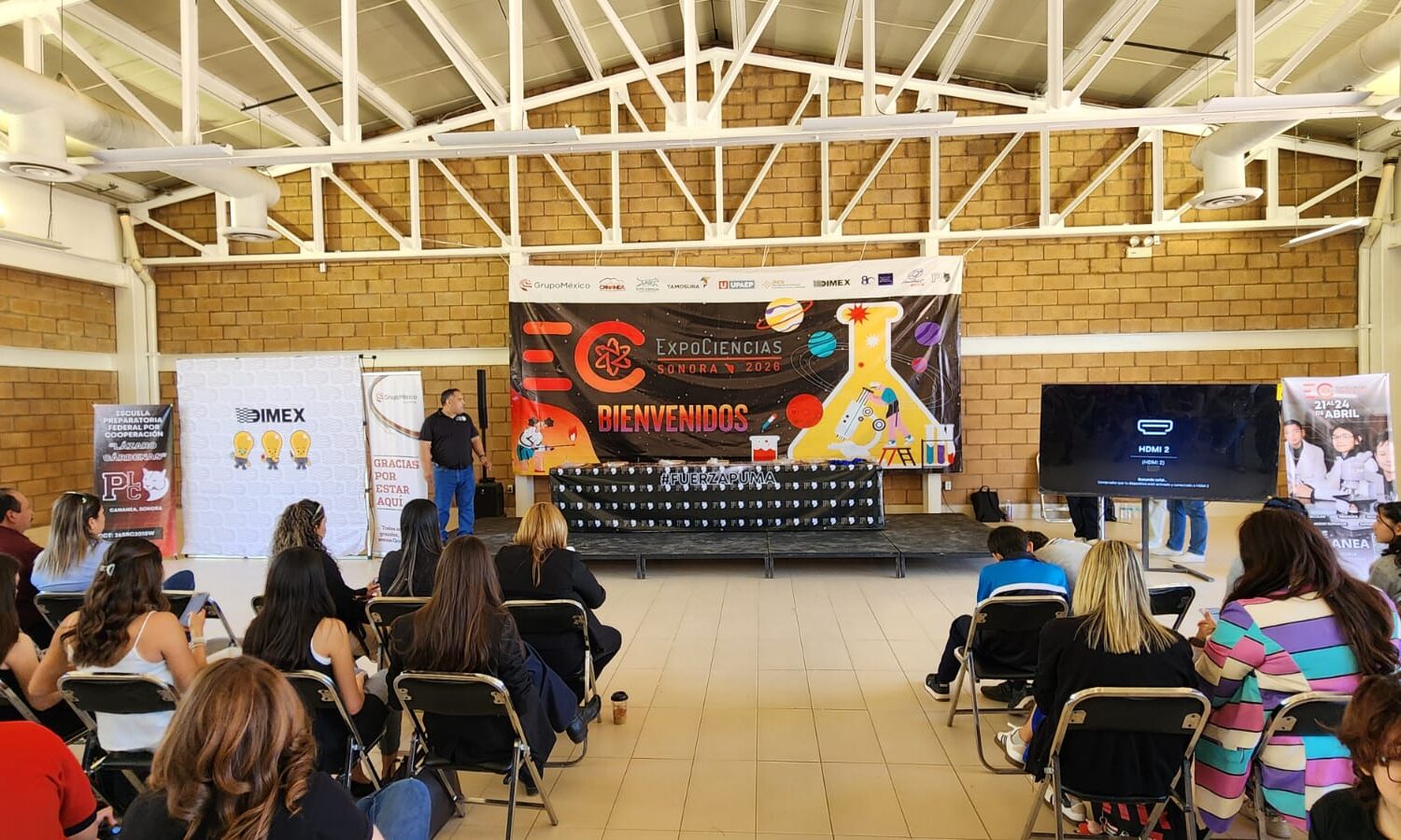 Cananea, Sonora, a 25 de abril de 2026.- Este viernes Grupo Dimex celebró la ceremonia de premiación y clausura de la Expo Ciencias Sonora 2026, realizada por primera ocasión fuera de la capital y donde el Parque Tamosura de Cananea fue sede para recibir a alrededor de 400 estudiantes de todos los niveles educativos, quienes presentaron 135 innovadores proyectos.