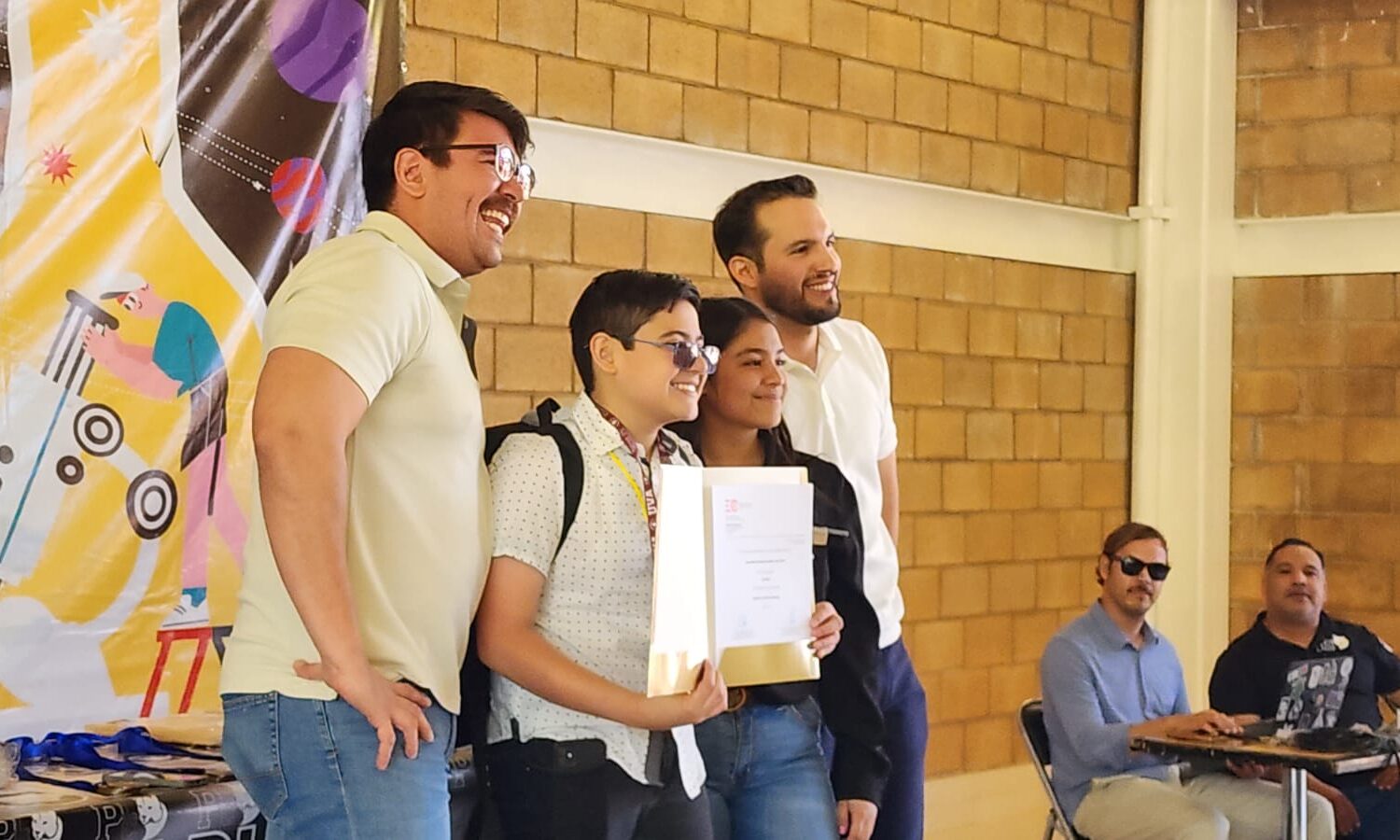En media superior, resultaron dos proyectos seleccionados de Cananea, “Aulas Vivas Cosechando Aprendizaje” de la Preparatoria Lázaro Cárdenas, y “SeñIA – Intérprete de LSM” del CBTIS No. 106. Además de “AerionSafe” y “A.L.I.”, ambos de la Prepa Tec Navojoa, “ECODOT” de la Universidad Unilider Campus Navojoa, “Hyro” del Instituto Tecnológico Superior de Puerto Peñasco, y el proyecto “iDial” de la UES Campus Navojoa.