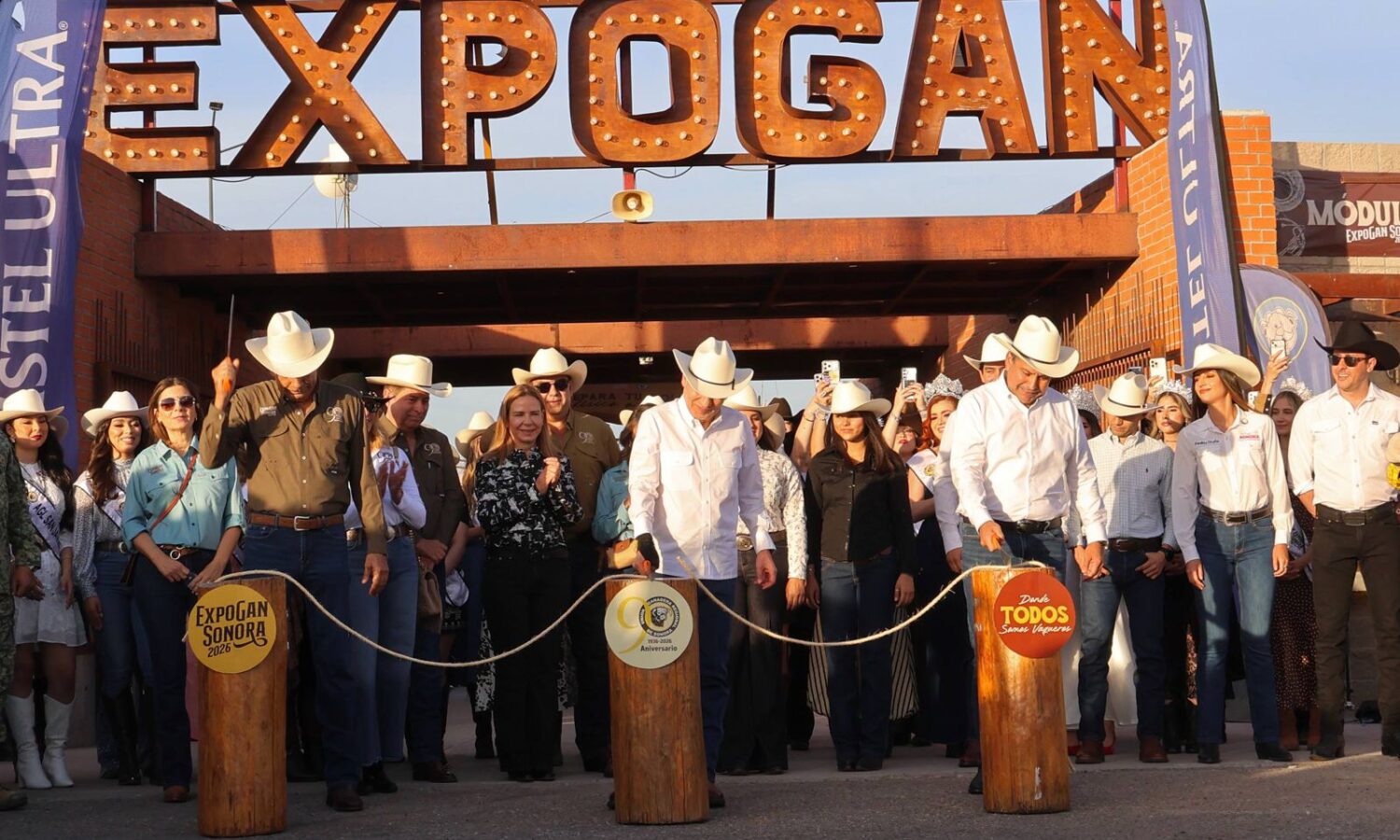 Hermosillo, Sonora; 23 de abril de 2026.- Con el tradicional corte de reata y un mensaje de respaldo al sector productivo, el gobernador Alfonso Durazo Montaño, acompañado de la presidenta honoraria del Sistema DIF Estatal, María del Roció Chávez Murillo, encabezó la inauguración oficial de la ExpoGan Sonora 2026, dando inicio a la máxima celebración ganadera del estado, un evento que fortalece la economía regional, impulsa el turismo y preserva las tradiciones que distinguen a Sonora a nivel nacional.
