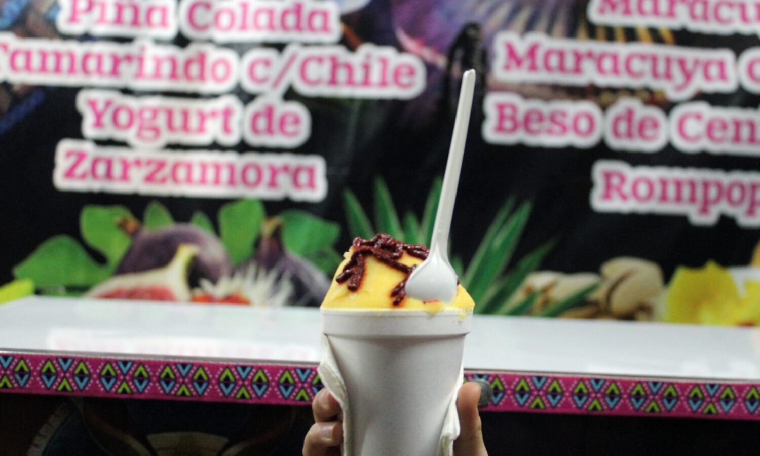 Si lo que buscas es algo dulce, podrás encontrar ricas nieves artesanales con ingredientes naturales de mamey, pistache, limón, tequila, fresa, chicle, queso, guanábana, galleta oreo, pay de limón, vino tinto, frutos rojos, pastel de rosa, mango con chile, coco, beso de ángel, entre otros, además de marquesitas, gorditas de nata con varios ingredientes a elegir y dulces típicos de regiones del sur.