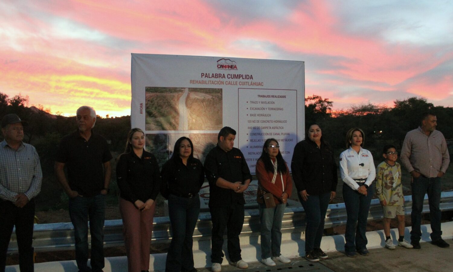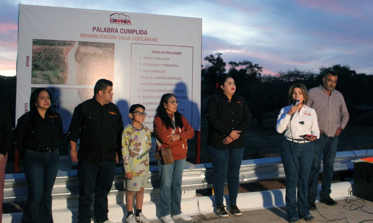 Cananea, Sonora, a 21 de abril de 2026.- Tras más de 4 años de cierre, la tarde noche de este martes la presidenta municipal de Cananea, Esmeralda González Tapia, dio el banderazo de reapertura de la calle Cuitláhuac, una sentida demanda de la población y necesaria vialidad que conecta a dos importantes sectores del municipio, cumpliendo así una de sus promesas de campaña.